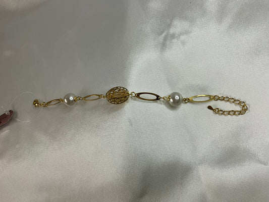18 k gold plated Bracelet with portugueses links and heart pendant